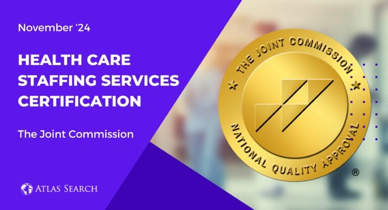 “Health Care Staffing Services Certification recognizes health care staffing firms committed to striving for excellence and fostering continuous improvement in patient safety and quality of care,” says Ken Grubbs, DNP, MBA, RN, executive vice president of Accreditation and Certification Operations and chief nursing officer, The Joint Commission. “We commend Atlas Search for using The Joint Commission certification process to reduce variation in clinical processes and to strengthen its clinical program to drive safer, higher quality and more compassionate care for individuals served.”